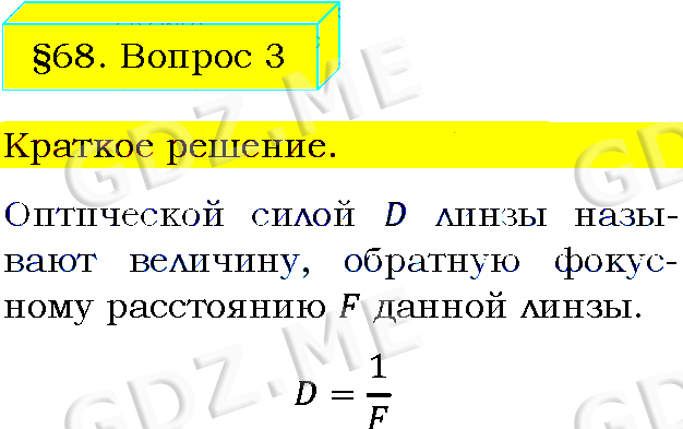 Подробный вариант решения из решебника (ГДЗ): Задание номер 3 (§68. Линзы. Оптическая сила линзы. Вопросы) по предмету Физика, за 8 класс, авторы учебника Пёрышкин А.В..