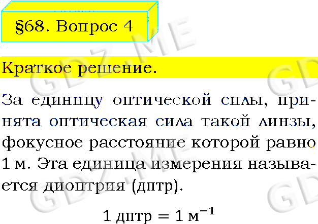 Подробный вариант решения из решебника (ГДЗ): Задание номер 4 (§68. Линзы. Оптическая сила линзы. Вопросы) по предмету Физика, за 8 класс, авторы учебника Пёрышкин А.В..