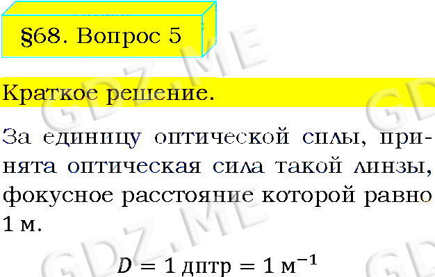 Подробный вариант решения из решебника (ГДЗ): Задание номер 5 (§68. Линзы. Оптическая сила линзы. Вопросы) по предмету Физика, за 8 класс, авторы учебника Пёрышкин А.В..