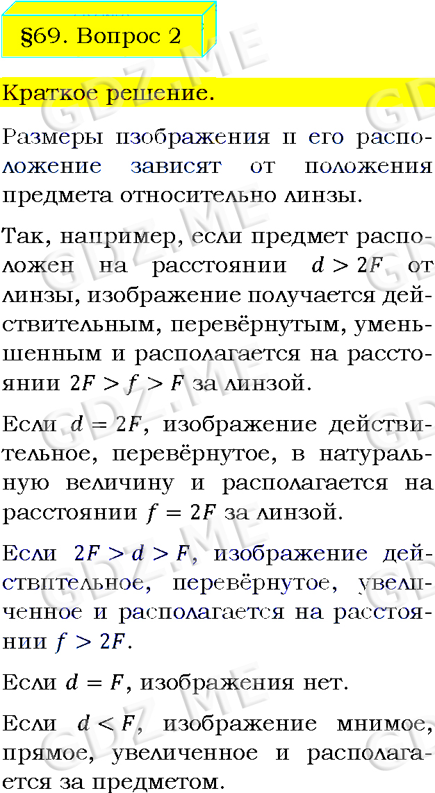 Подробный вариант решения из решебника (ГДЗ): Задание номер 2 (§69. Изображения, даваемые линзой. Вопросы) по предмету Физика, за 8 класс, авторы учебника Пёрышкин А.В..