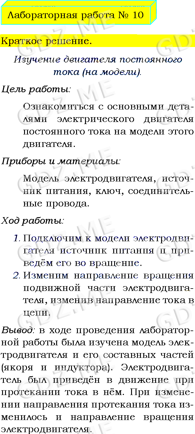 Подробный вариант решения из решебника (ГДЗ): Задание номер 10 (Лабораторные работы) по предмету Физика, за 8 класс, авторы учебника Пёрышкин А.В..