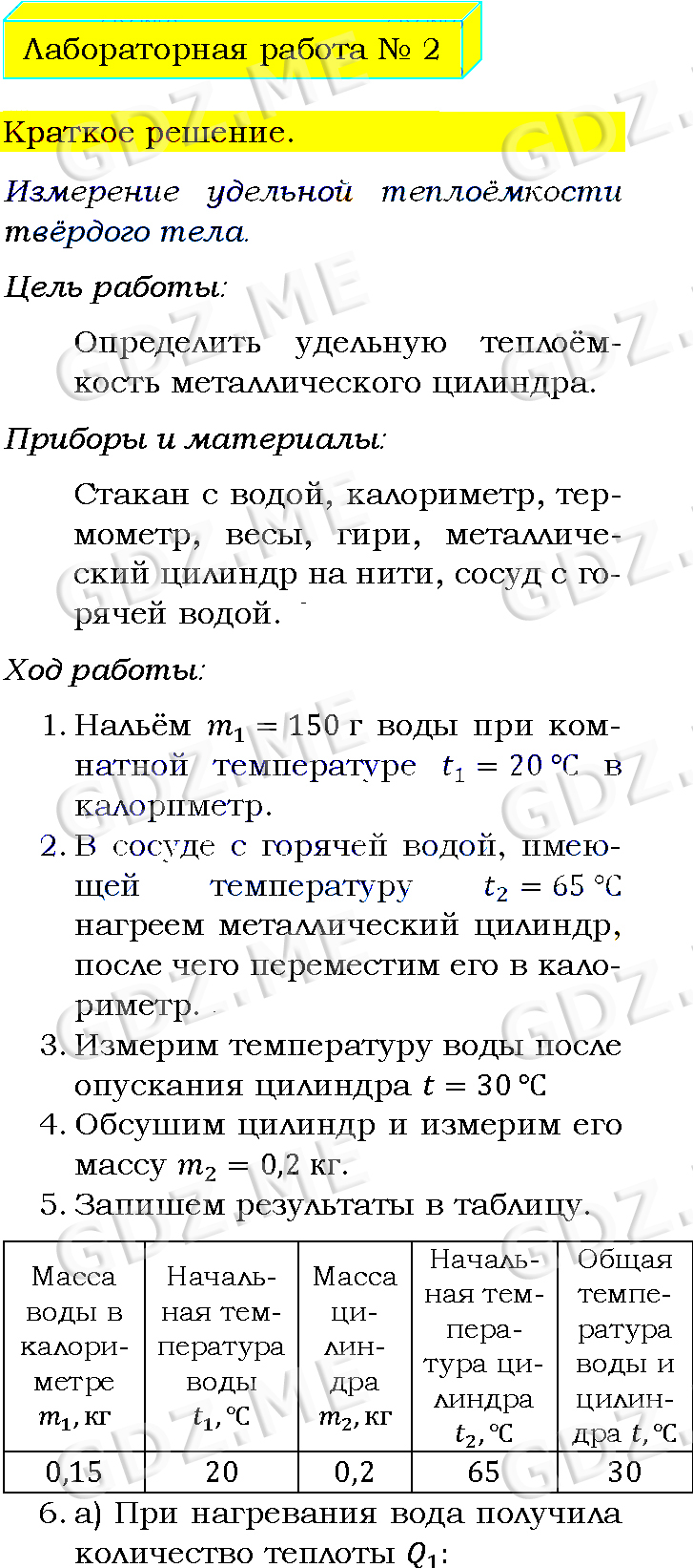 Подробный вариант решения из решебника (ГДЗ): Задание номер 2 (Лабораторные работы) по предмету Физика, за 8 класс, авторы учебника Пёрышкин А.В..