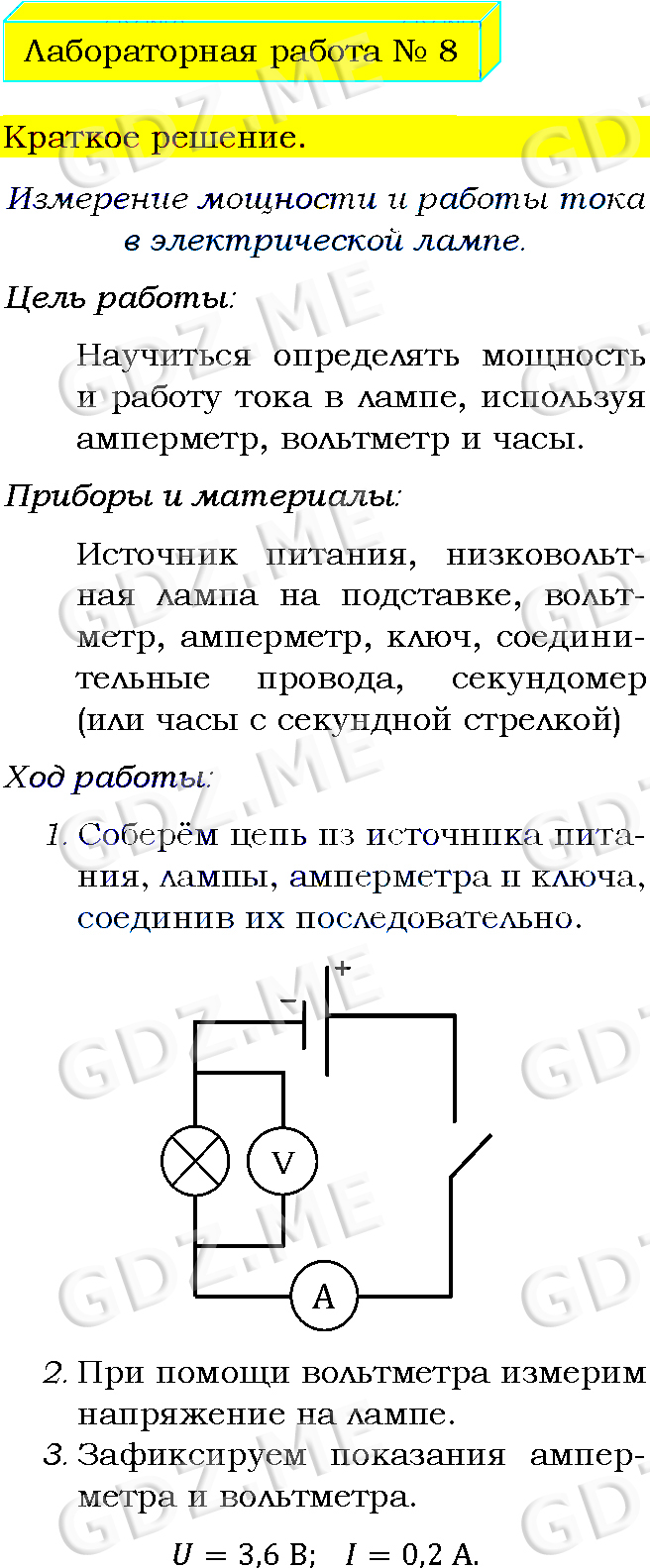 Подробный вариант решения из решебника (ГДЗ): Задание номер 8 (Лабораторные работы) по предмету Физика, за 8 класс, авторы учебника Пёрышкин А.В..