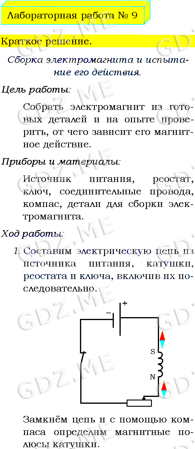 Подробный вариант решения из решебника (ГДЗ): Задание номер 9 (Лабораторные работы) по предмету Физика, за 8 класс, авторы учебника Пёрышкин А.В..
