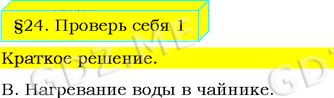 Подробный вариант решения из решебника (ГДЗ): Задание номер 1 (§24. КПД теплового двигателя. Проверь себя) по предмету Физика, за 8 класс, авторы учебника Пёрышкин А.В..