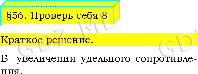 Подробный вариант решения из решебника (ГДЗ): Задание номер 8 (§56. Короткое замыкание. Предохранители. Проверь себя) по предмету Физика, за 8 класс, авторы учебника Пёрышкин А.В..