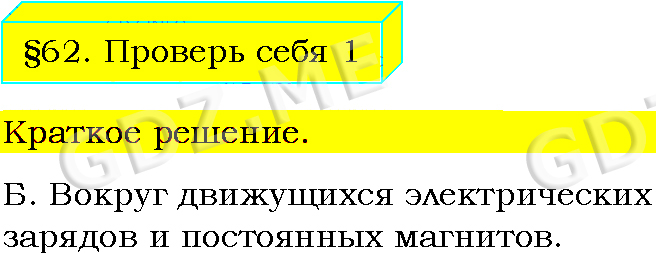 Подробный вариант решения из решебника (ГДЗ): Задание номер 1 (§62. Действие магнитного поля на проводник с током. Электрический двигатель. Проверь себя) по предмету Физика, за 8 класс, авторы учебника Пёрышкин А.В..