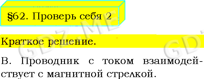 Подробный вариант решения из решебника (ГДЗ): Задание номер 2 (§62. Действие магнитного поля на проводник с током. Электрический двигатель. Проверь себя) по предмету Физика, за 8 класс, авторы учебника Пёрышкин А.В..