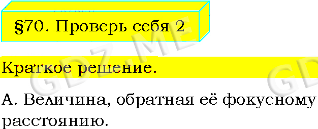 Подробный вариант решения из решебника (ГДЗ): Задание номер 2 (§70. Глаз и зрение. Проверь себя) по предмету Физика, за 8 класс, авторы учебника Пёрышкин А.В..