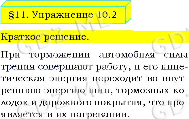 Подробный вариант решения из решебника (ГДЗ): Упражнение номер 2 (§11. Закон сохранения и превращения энергии в механических и тепловых процессах. Упражнение 10) по предмету Физика, за 8 класс, авторы учебника Пёрышкин А.В..