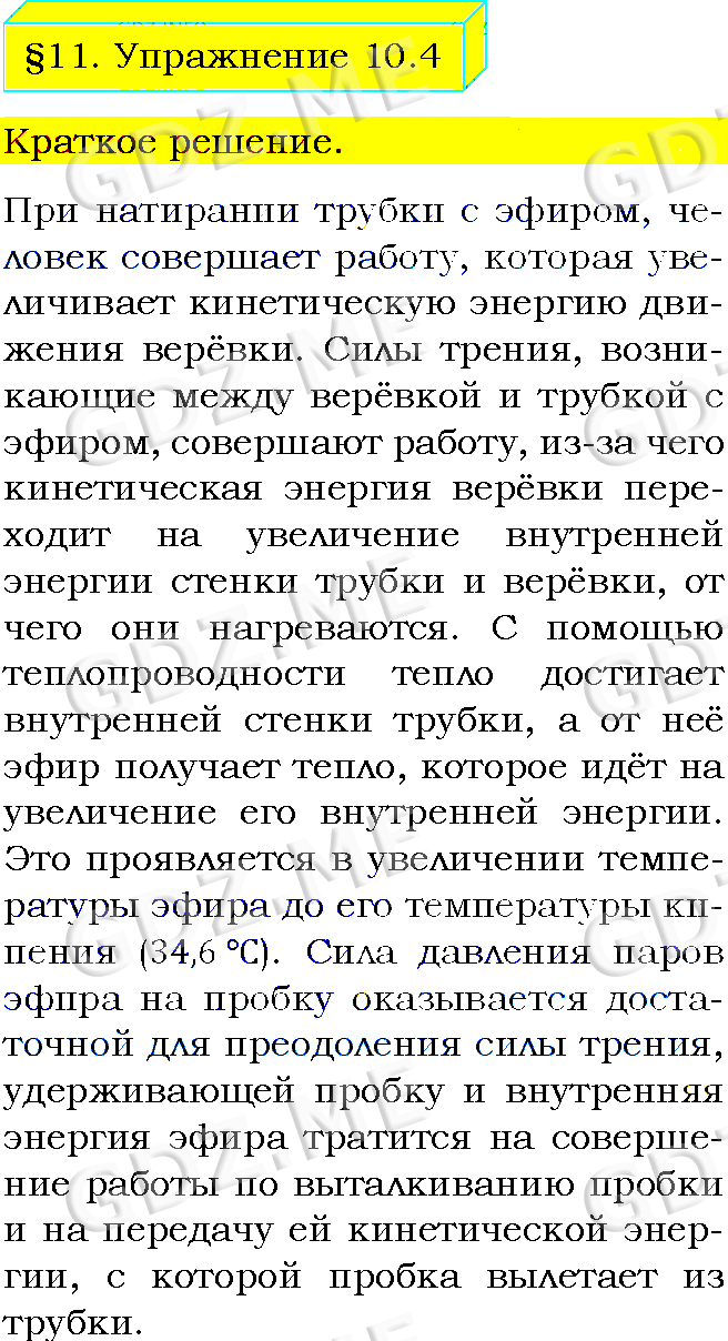 Подробный вариант решения из решебника (ГДЗ): Упражнение номер 4 (§11. Закон сохранения и превращения энергии в механических и тепловых процессах. Упражнение 10) по предмету Физика, за 8 класс, авторы учебника Пёрышкин А.В..