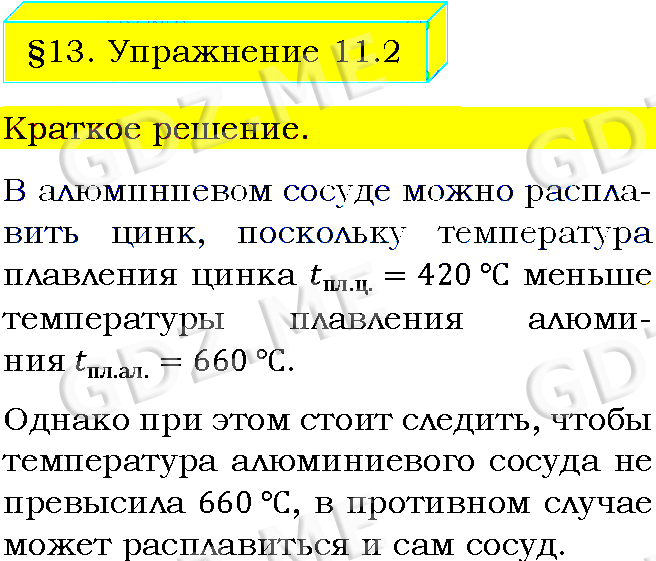 Подробный вариант решения из решебника (ГДЗ): Упражнение номер 2 (§13. Плавление и отвердевание кристаллических тел. Упражнение 11) по предмету Физика, за 8 класс, авторы учебника Пёрышкин А.В..