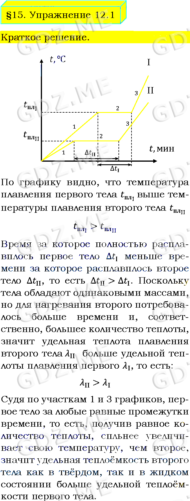 Подробный вариант решения из решебника (ГДЗ): Упражнение номер 1 (§15. Удельная теплота плавления. Упражнение 12) по предмету Физика, за 8 класс, авторы учебника Пёрышкин А.В..