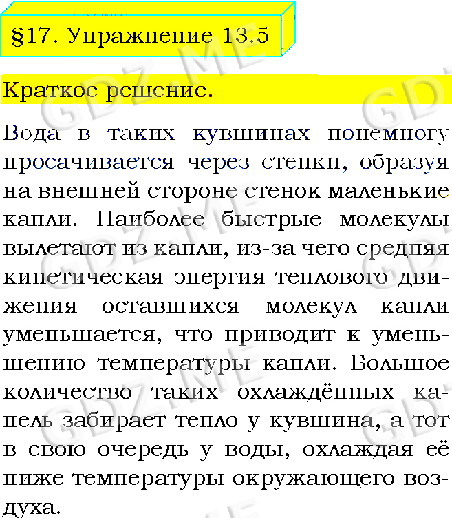 Подробный вариант решения из решебника (ГДЗ): Упражнение номер 5 (§17. Поглощение энергии при испарении жидкости и выделение её при конденсации пара. Упражнение 13) по предмету Физика, за 8 класс, авторы учебника Пёрышкин А.В..