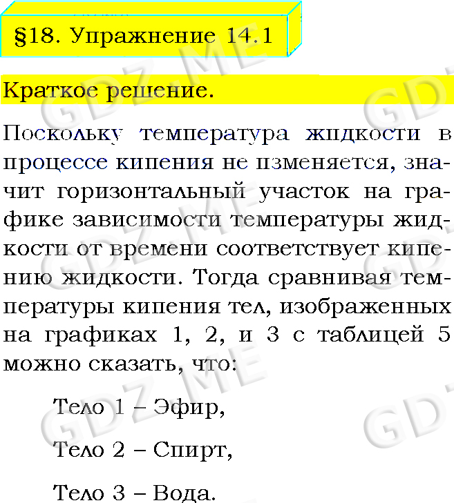 Подробный вариант решения из решебника (ГДЗ): Упражнение номер 1 (§18. Кипение. Упражнение 14) по предмету Физика, за 8 класс, авторы учебника Пёрышкин А.В..