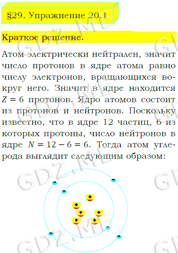 Подробный вариант решения из решебника (ГДЗ): Упражнение номер 1 (§29. Строение атомов. Упражнение 20) по предмету Физика, за 8 класс, авторы учебника Пёрышкин А.В..