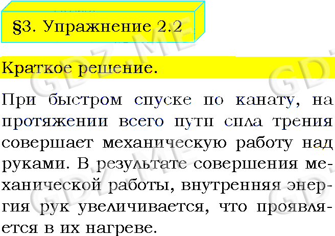 Подробный вариант решения из решебника (ГДЗ): Упражнение номер 2 (§3. Способы изменения внутренней энергии тела. Упражнение 2) по предмету Физика, за 8 класс, авторы учебника Пёрышкин А.В..