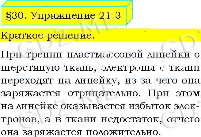 Подробный вариант решения из решебника (ГДЗ): Упражнение номер 3 (§30. Объяснение электрических явлений. Упражнение 21) по предмету Физика, за 8 класс, авторы учебника Пёрышкин А.В..