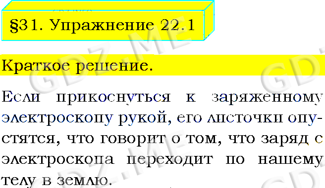 Подробный вариант решения из решебника (ГДЗ): Упражнение номер 1 (§31. Проводники, полупроводники и непроводники электричества. Упражнение 22) по предмету Физика, за 8 класс, авторы учебника Пёрышкин А.В..