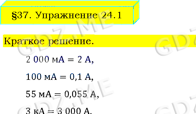 Подробный вариант решения из решебника (ГДЗ): Упражнение номер 1 (§37. Сила тока. Единицы силы тока. Упражнение 24) по предмету Физика, за 8 класс, авторы учебника Пёрышкин А.В..