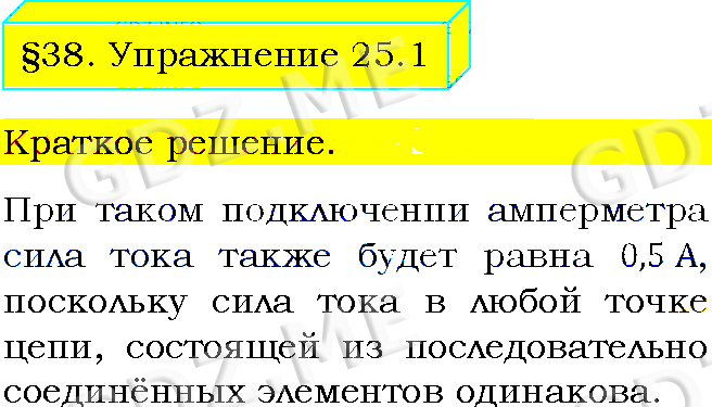 Подробный вариант решения из решебника (ГДЗ): Упражнение номер 1 (§38. Амперметр. Измерение силы тока. Упражнение 25) по предмету Физика, за 8 класс, авторы учебника Пёрышкин А.В..