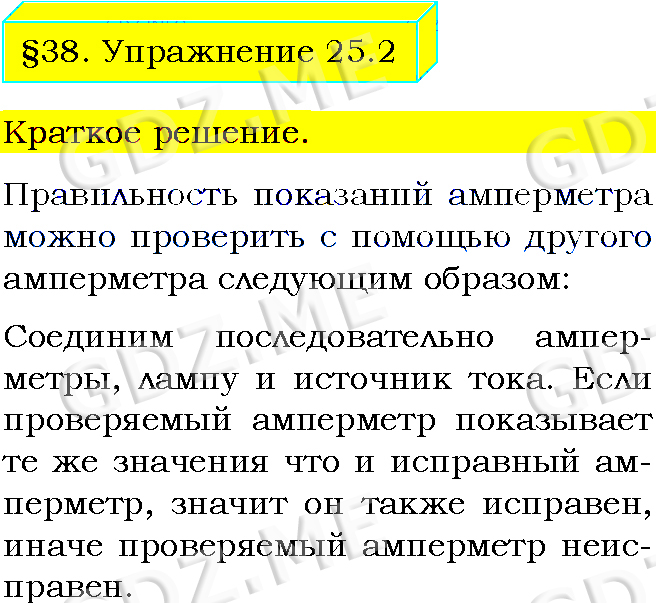 Подробный вариант решения из решебника (ГДЗ): Упражнение номер 2 (§38. Амперметр. Измерение силы тока. Упражнение 25) по предмету Физика, за 8 класс, авторы учебника Пёрышкин А.В..