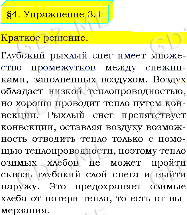 Подробный вариант решения из решебника (ГДЗ): Упражнение номер 1 (§4. Теплопроводность. Упражнение 3) по предмету Физика, за 8 класс, авторы учебника Пёрышкин А.В..