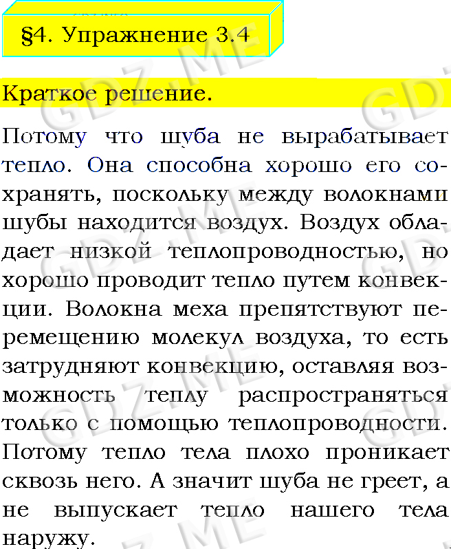 Подробный вариант решения из решебника (ГДЗ): Упражнение номер 4 (§4. Теплопроводность. Упражнение 3) по предмету Физика, за 8 класс, авторы учебника Пёрышкин А.В..