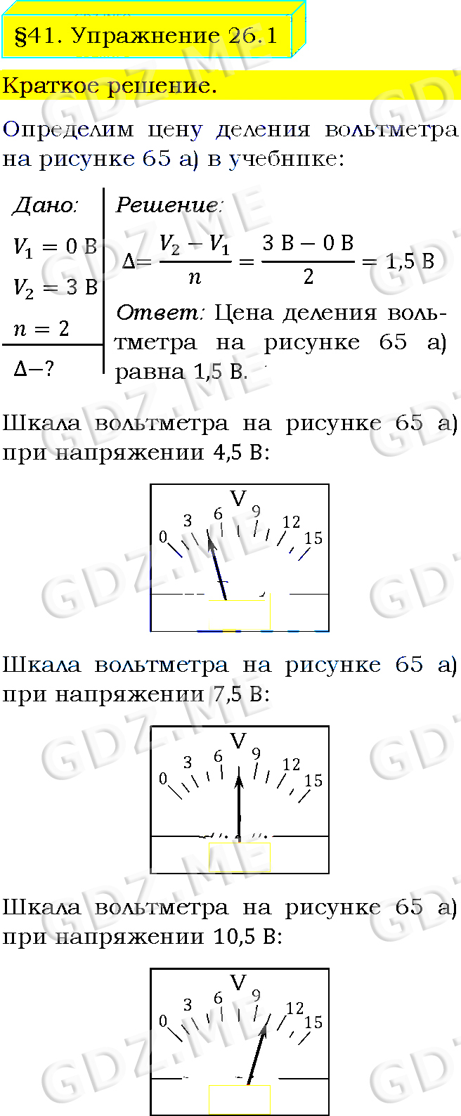 Подробный вариант решения из решебника (ГДЗ): Упражнение номер 1 (§41. Вольтметр. Измерение напряжения. Упражнение 26) по предмету Физика, за 8 класс, авторы учебника Пёрышкин А.В..