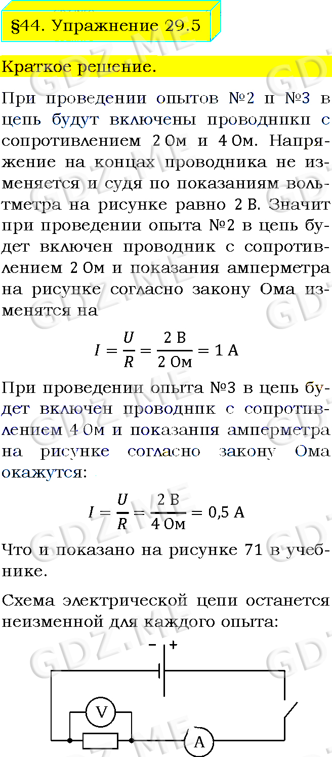 Подробный вариант решения из решебника (ГДЗ): Упражнение номер 5 (§44. Закон Ома для участка цепи. Упражнение 29) по предмету Физика, за 8 класс, авторы учебника Пёрышкин А.В..
