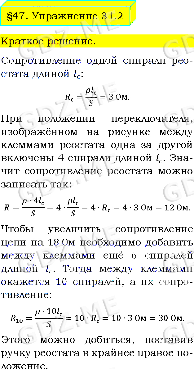 Подробный вариант решения из решебника (ГДЗ): Упражнение номер 2 (§47. Реостат. Упражнение 31) по предмету Физика, за 8 класс, авторы учебника Пёрышкин А.В..