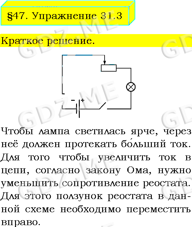 Подробный вариант решения из решебника (ГДЗ): Упражнение номер 3 (§47. Реостат. Упражнение 31) по предмету Физика, за 8 класс, авторы учебника Пёрышкин А.В..