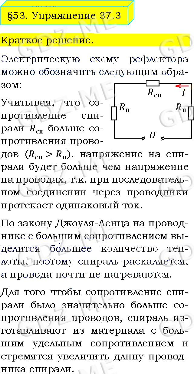 Подробный вариант решения из решебника (ГДЗ): Упражнение номер 3 (§53. Нагревание проводников электрическим током. Закон Джоуля—Ленца. Упражнение 37) по предмету Физика, за 8 класс, авторы учебника Пёрышкин А.В..
