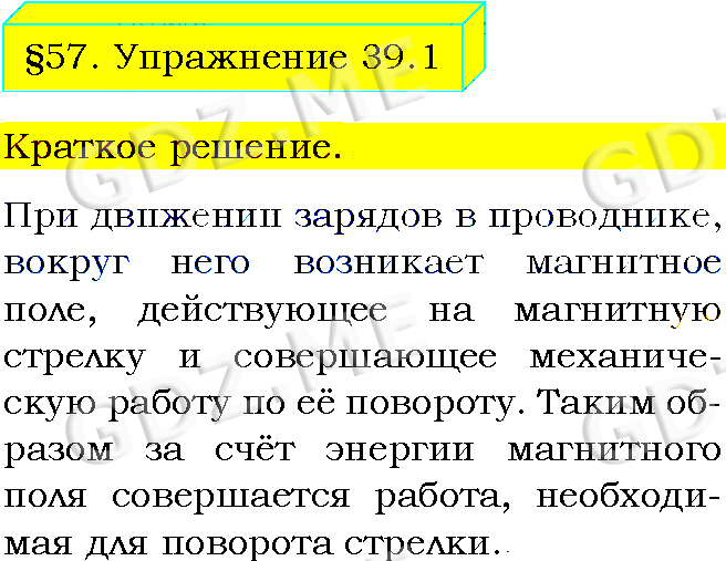 Подробный вариант решения из решебника (ГДЗ): Упражнение номер 1 (§57. Магнитное поле. Упражнение 39) по предмету Физика, за 8 класс, авторы учебника Пёрышкин А.В..