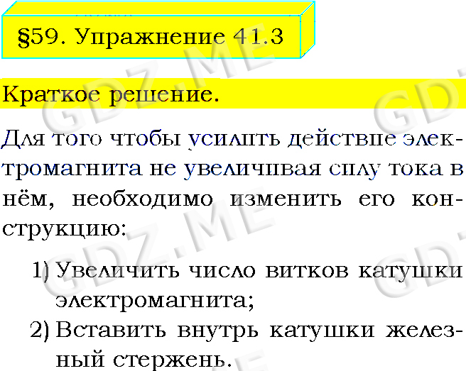 Подробный вариант решения из решебника (ГДЗ): Упражнение номер 3 (§59. Магнитное поле катушки с током. Электромагниты и их применение. Упражнение 41) по предмету Физика, за 8 класс, авторы учебника Пёрышкин А.В..