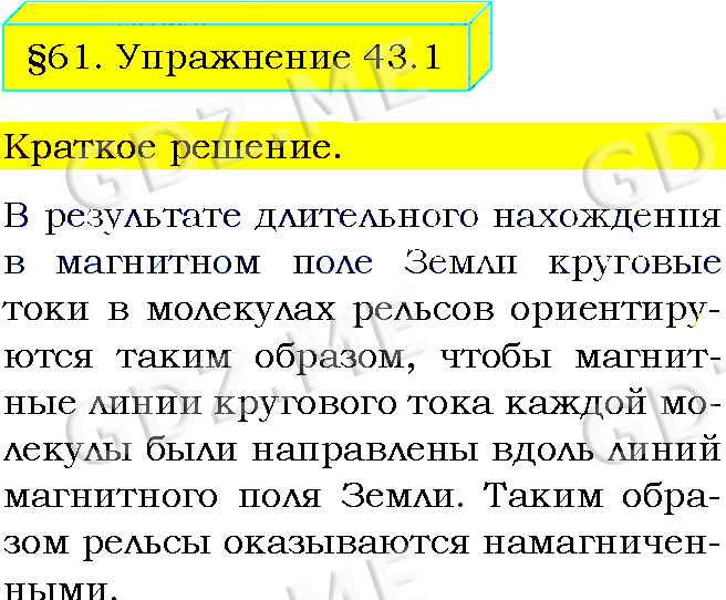Подробный вариант решения из решебника (ГДЗ): Упражнение номер 1 (§61. Магнитное поле Земли. Упражнение 43) по предмету Физика, за 8 класс, авторы учебника Пёрышкин А.В..