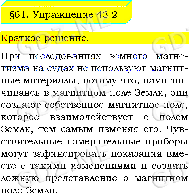 Подробный вариант решения из решебника (ГДЗ): Упражнение номер 2 (§61. Магнитное поле Земли. Упражнение 43) по предмету Физика, за 8 класс, авторы учебника Пёрышкин А.В..