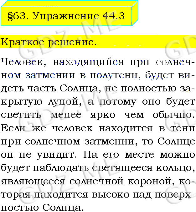 Подробный вариант решения из решебника (ГДЗ): Упражнение номер 3 (§63. Источники света. Распространение света. Упражнение 44) по предмету Физика, за 8 класс, авторы учебника Пёрышкин А.В..