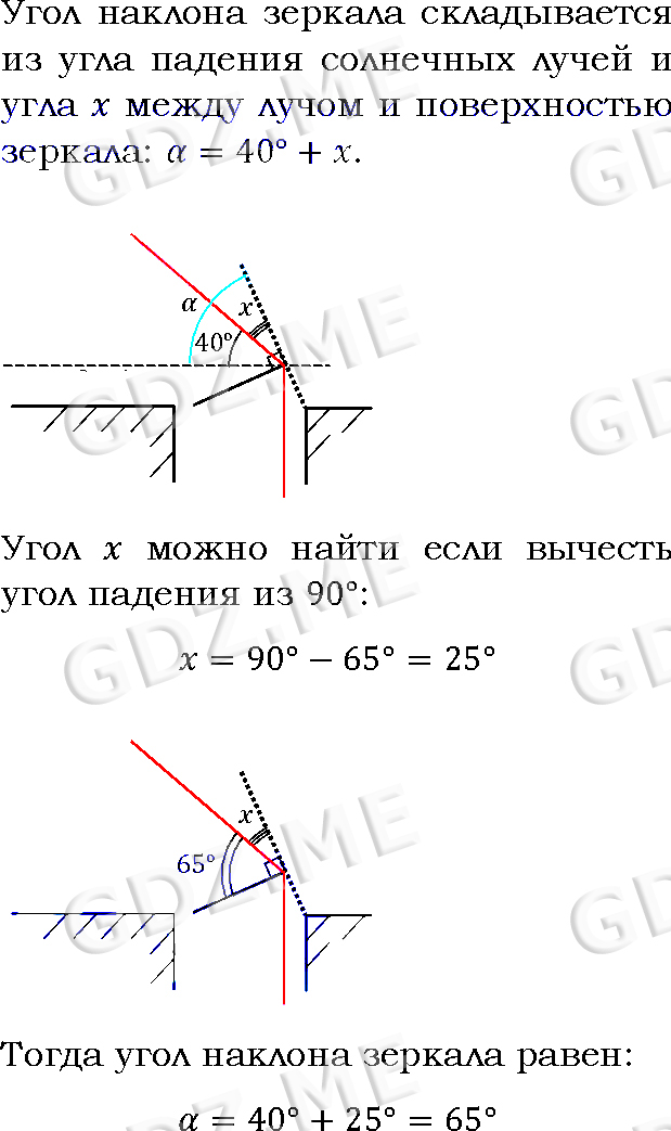 Подробный вариант решения из решебника (ГДЗ): Упражнение номер 4_1 (§65. Отражение света. Закон отражения света. Упражнение 45) по предмету Физика, за 8 класс, авторы учебника Пёрышкин А.В..