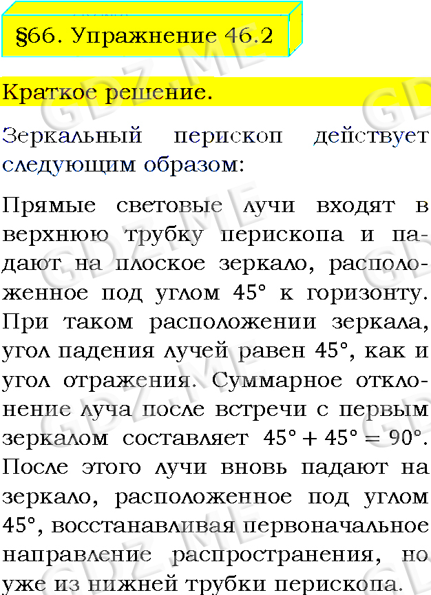 Подробный вариант решения из решебника (ГДЗ): Упражнение номер 2 (§66. Плоское зеркало. Упражнение 46) по предмету Физика, за 8 класс, авторы учебника Пёрышкин А.В..