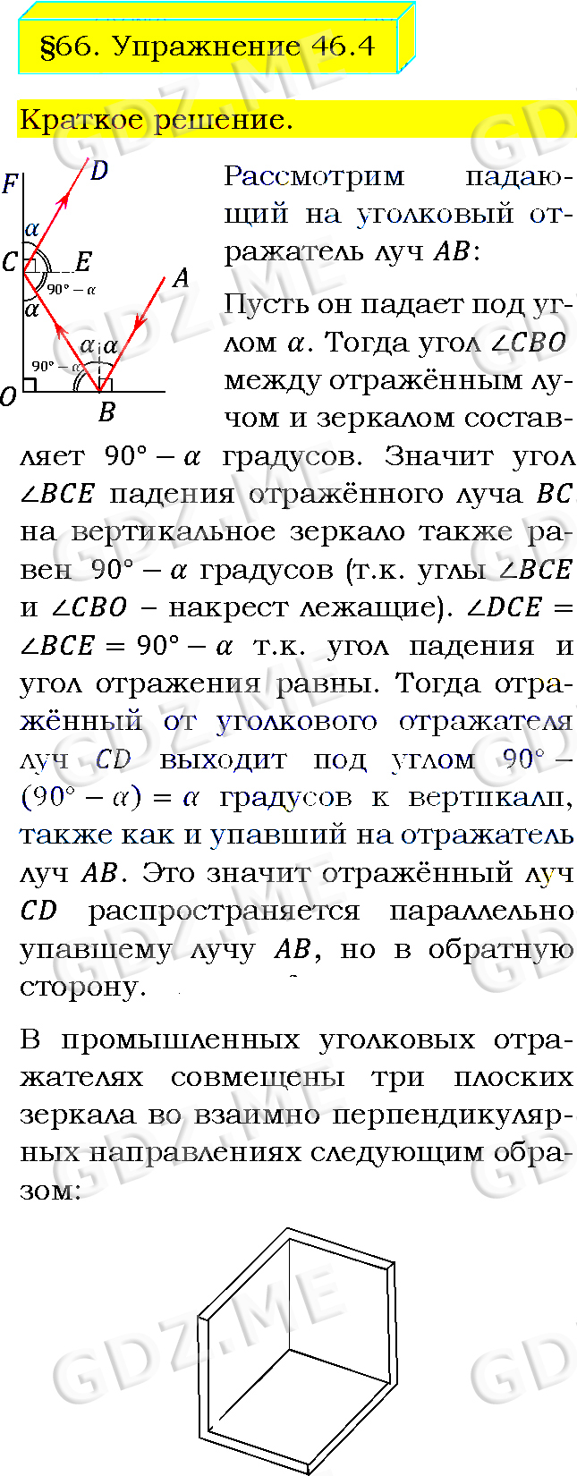 Подробный вариант решения из решебника (ГДЗ): Упражнение номер 4 (§66. Плоское зеркало. Упражнение 46) по предмету Физика, за 8 класс, авторы учебника Пёрышкин А.В..