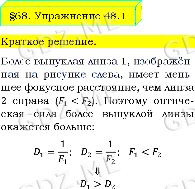 Подробный вариант решения из решебника (ГДЗ): Упражнение номер 1 (§68. Линзы. Оптическая сила линзы. Упражнение 48) по предмету Физика, за 8 класс, авторы учебника Пёрышкин А.В..