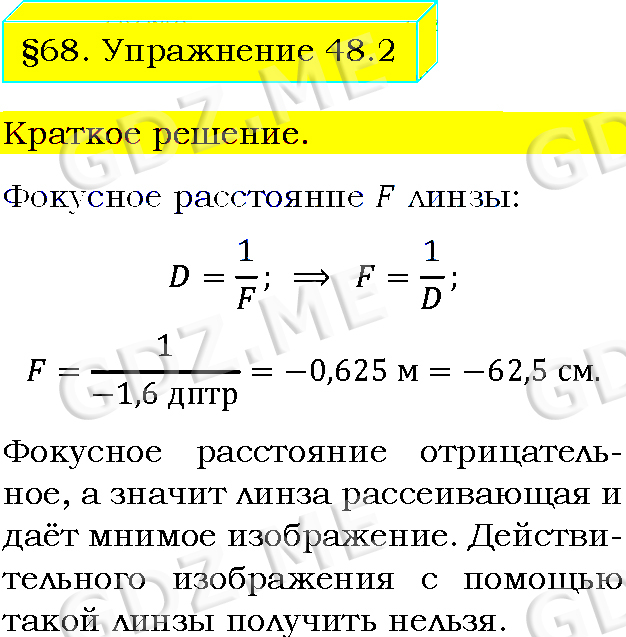 Подробный вариант решения из решебника (ГДЗ): Упражнение номер 2 (§68. Линзы. Оптическая сила линзы. Упражнение 48) по предмету Физика, за 8 класс, авторы учебника Пёрышкин А.В..