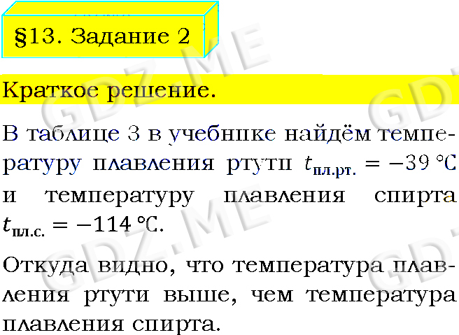 Подробный вариант решения из решебника (ГДЗ): Задание номер 2 (§13. Плавление и отвердевание кристаллических тел. Задание) по предмету Физика, за 8 класс, авторы учебника Пёрышкин А.В..