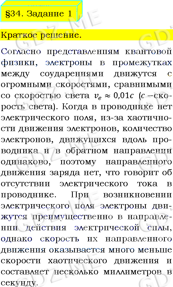 Подробный вариант решения из решебника (ГДЗ): Задание номер 1 (§34. Электрический ток в металлах. Задание) по предмету Физика, за 8 класс, авторы учебника Пёрышкин А.В..