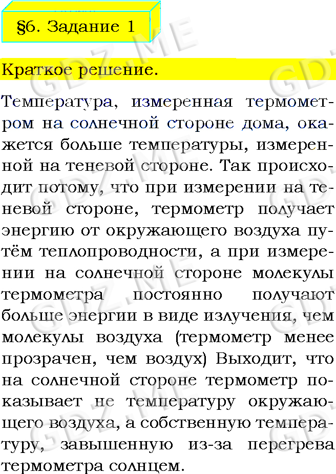 Подробный вариант решения из решебника (ГДЗ): Задание номер 1 (§6. Излучение. Задание) по предмету Физика, за 8 класс, авторы учебника Пёрышкин А.В..