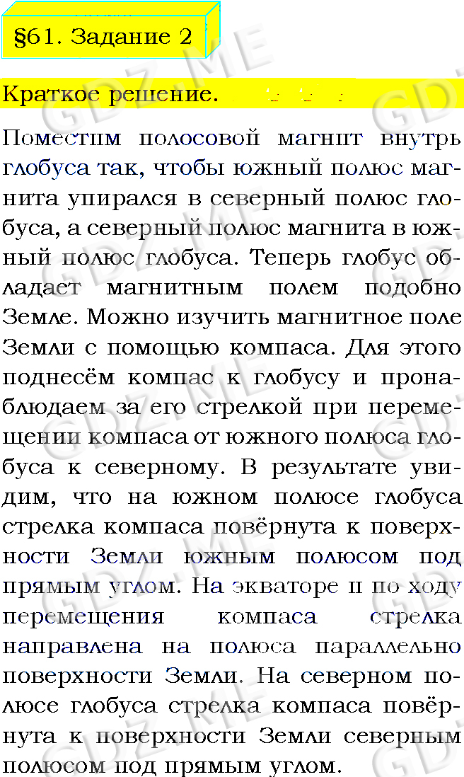 Подробный вариант решения из решебника (ГДЗ): Задание номер 2 (§61. Магнитное поле Земли. Задание) по предмету Физика, за 8 класс, авторы учебника Пёрышкин А.В..