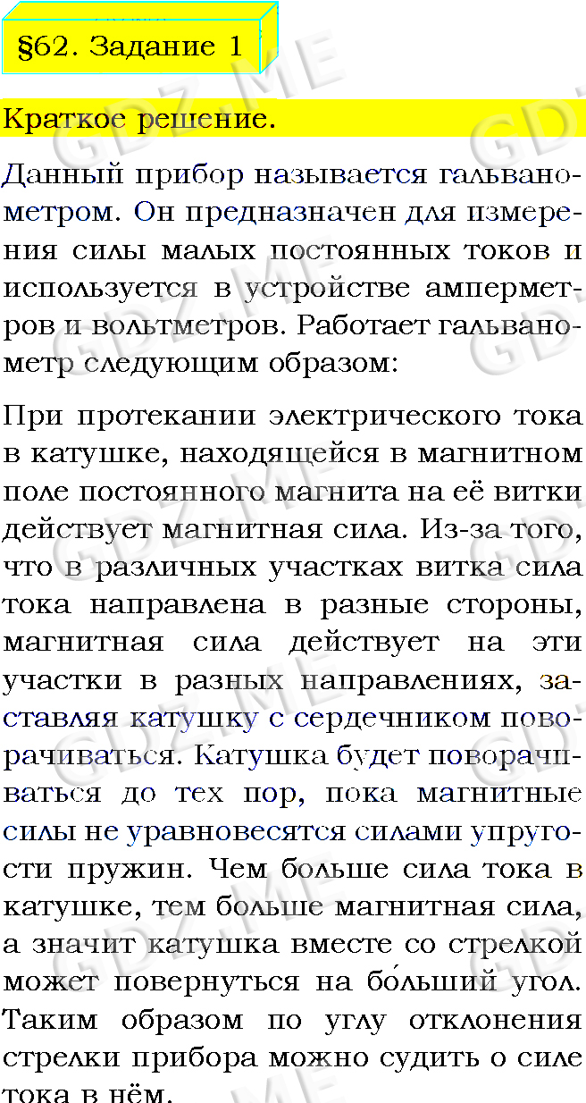 Подробный вариант решения из решебника (ГДЗ): Задание номер 1 (§62. Действие магнитного поля на проводник с током. Электрический двигатель. Задание) по предмету Физика, за 8 класс, авторы учебника Пёрышкин А.В..