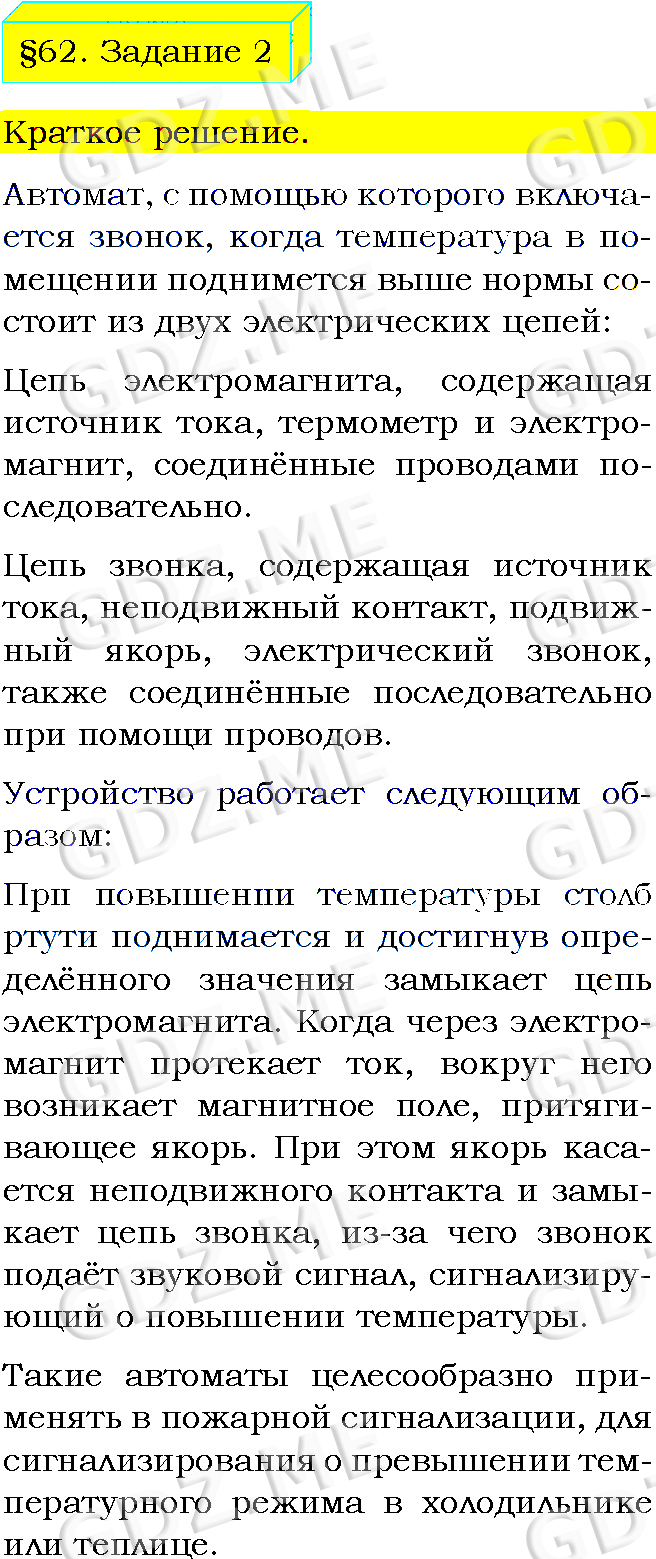 Подробный вариант решения из решебника (ГДЗ): Задание номер 2 (§62. Действие магнитного поля на проводник с током. Электрический двигатель. Задание) по предмету Физика, за 8 класс, авторы учебника Пёрышкин А.В..