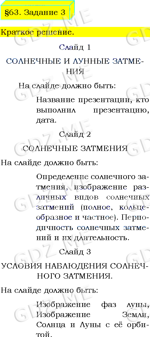 Подробный вариант решения из решебника (ГДЗ): Задание номер 3 (§63. Источники света. Распространение света. Задание) по предмету Физика, за 8 класс, авторы учебника Пёрышкин А.В..